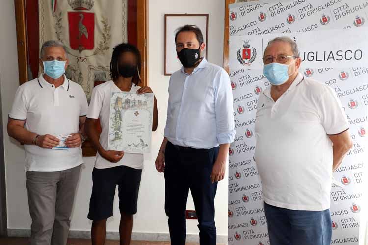 Grugliasco, festa in Comune per il giovane Jamir, che ha soccorso una donna in difficoltà