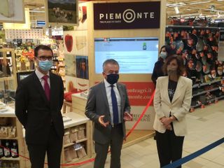 Un angolo (anche se in realtà è un parallelepipedo) per mettere in vetrina il meglio che il Piemonte sa proporre. Si chiama "Gusto singolare" la nuova iniziativa che Regione e VisitPiemonte hanno inaugurato oggi in collaborazione con Carrefour presso il punto vendita di via Crea, al centro commerciale Le Gru.