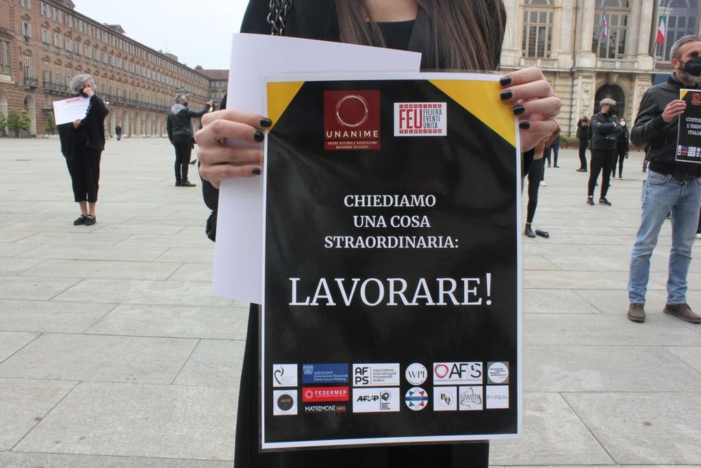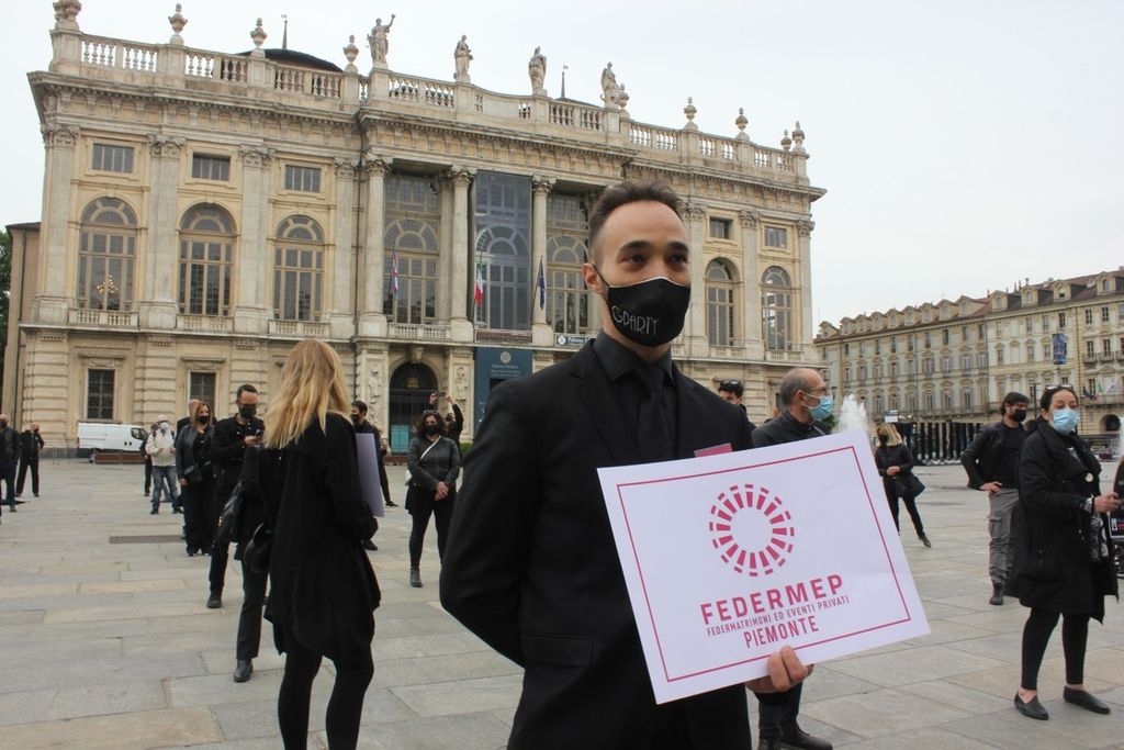 Si sono ritrovati - come molti prima di loro - sotto le finestre della Regione in piazza Castello. Chiedono certezze, soprattutto una data per ripartire. Una manifestazione in contemporanea con altri 11 capoluoghi di Regione, organizzata da UNANIME – la Confederazione delle Associazioni di categoria del settore Matrimoni ed Eventi –, in collaborazione con Filiera Eventi Unita e, per la piazza di Roma, con Insieme per il Wedding. Una cerimonia malinconica, con tutti i partecipanti vestiti di nero a manifestare un lutto per una situazione ormai insostenibile.