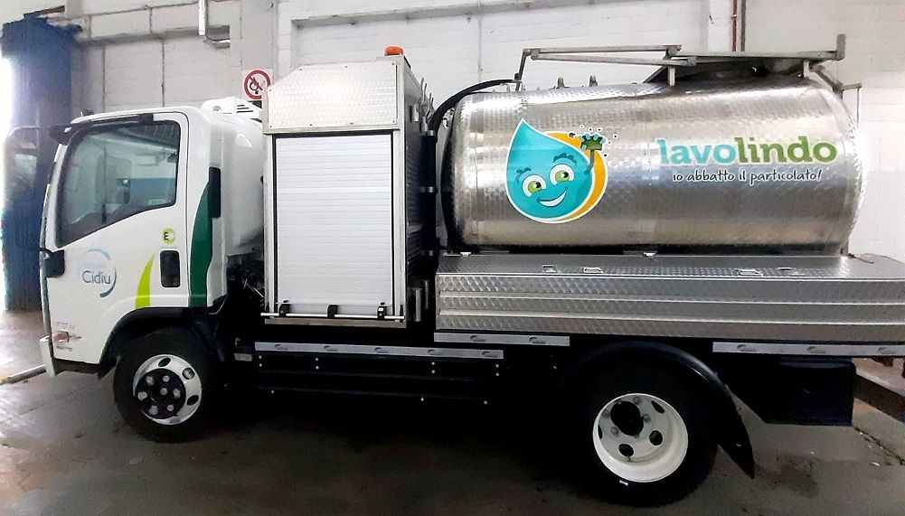 Lavolindo, è l’innovativo veicolo lavastrade completamente elettrico che sfrutta il principio della nebulizzazione per abbattere il particolato attraverso l’impiego di semplice acqua, senza dover ricorrere ad altre sostanze. Lorenzo Destefanis, Dirigente Tecnico del Gruppo Cidiu, spiega: “Numerosi inquinanti sono solubili in acqua e altri hanno dimensioni molto fini; l’acqua che in Lavolindo è nebulizzata dagli ugelli sottoforma di milioni di minuscole gocce con un diametro di pochi micron, forma una finissima barriera che diventa a tutti gli effetti un filtro capace di catturare e appesantire le polveri sottili portandole a terra. Il successivo lavaggio fa confluire le particelle inquinanti nelle caditoie stradali”.