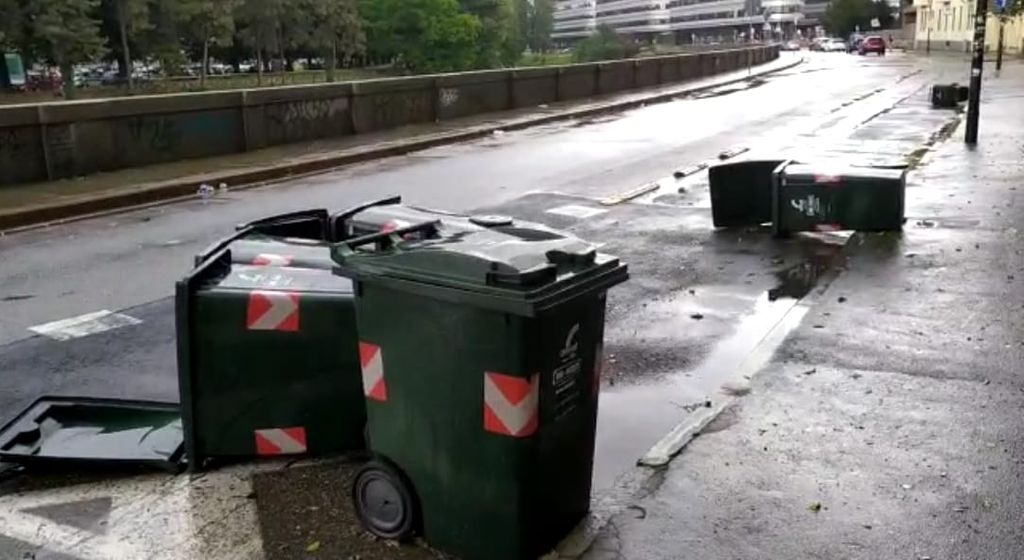 Scoperchiati alcuni cassonetti in Lungo Dora Siena, con il forte vento che ha anche sradicato alcune aiuole (vedi foto e video sopra).