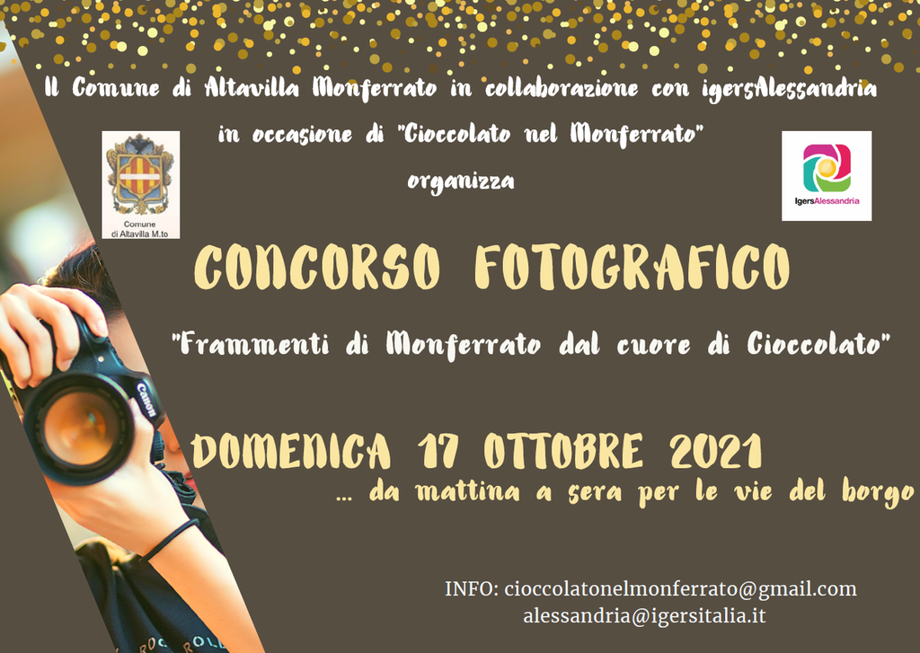 “Cioccolato nel Monferrato” organizza, con il patrocinio del Comune di Altavilla Monferrato e la partnership di IGERSALESSANDRIA, domenica 17 ottobre 2021 un contest fotografico per le vie del borgo di Altavilla Monferrato.