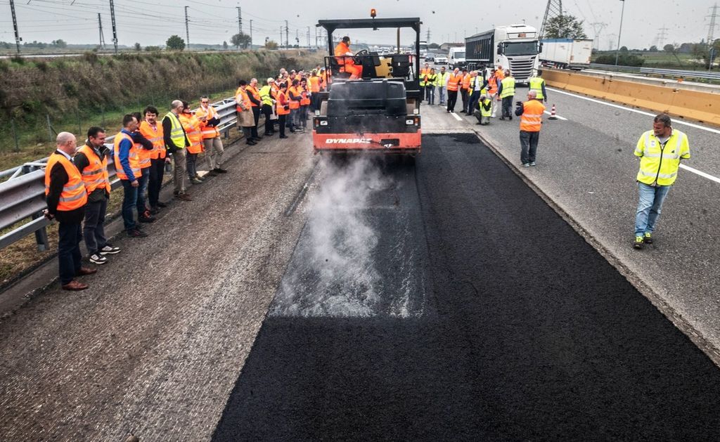 I lavori, iniziati nella mattina di oggi, giovedì 20 ottobre, interesseranno entrambe le direzioni di marcia per un totale di 250 km. Il Gruppo ASTM, secondo operatore al mondo di reti autostradali in concessione e player globale nella realizzazione di grandi opere infrastrutturali, impiegherà Gipave®, una tecnologia per asfalti che utilizza un processo brevettato e innovativo completamente made in Italy, risultato di una ricerca durata sei anni, condotta da Iterchimica - azienda italiana che opera in oltre 90 Paesi, leader nella produzione e messa a punto di prodotti e tecnologie per asfalti sostenibili - in collaborazione con G.Eco (gruppo A2A), Università degli Studi di Milano-Bicocca e Directa Plus.