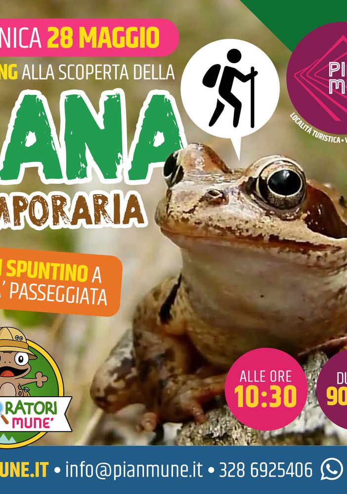 Il ritrovo è al Rifugio di Pian Munè perla partenza. La passeggiata sarà verso la Trebulina, alla ricerca dei piccoli specchi d’acqua dove la rana temporaria depone le uova. Durata della camminata, adatta a tutti, 90 minuti.