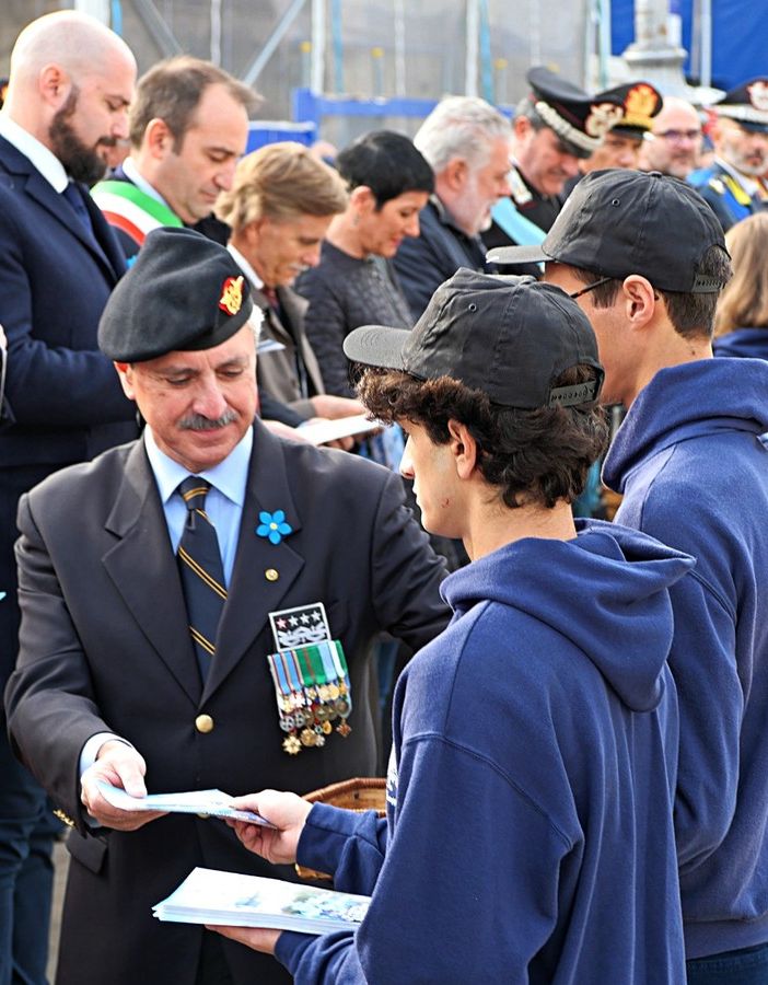In particolare, durante la cerimonia del 4 Novembre tenutasi questa mattina, gli studenti, insieme a i "veterani" dell'Assocazione Nazionale Artiglieri d'Italia e ad ASSOARMA, hanno consegnato ai cittadini presenti ed alle Autorità sul palco d'Onore centinaia di fiori all'occhiello Myosotis (“Non Ti scordar di Me”) in ricordo di tutti i Caduti per la Patria.