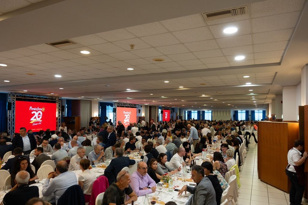 Nel giardino dell’ Hotel Il Giardino dei Tigli a Cussanio (Fossano), durante un apericena organizzato dai fornitori di gruppo, fra musica e chiacchiericcio, si è dato il via all’Evento di anniversario. Poi gli invitati sono entrati nel grandissimo salone apparecchiato a festa, e sul palco si sono via via passati il microfono i protagonisti del successo di Prestofresco in 20 anni di attività. L’Amministratore Delegato, Sebastiano Sapino, ha raccontato il successo di una filosofia vincente che, a partire dal 2004 ha portato il marchio ad essere sempre più scelto per l’indiscussa qualità di prodotti e del servizio offerto. I numeri, oggi, ne confermano il successo: 10 milioni di clienti, 820 dipendenti, di cui il 73% donne e di cui il 75% sono rapporti di lavoro indeterminato. Ha parlato anche Pierantonio Sapino, che ha fondato i primi punti vendita insieme ai 3 fratelli, emozionato e felice ma sicuro, oggi come ieri, che la strada è quella giusta. Fra le tante presenze e interventi, anche quello di Alberto Cirio, amico e testimone di questi anni di crescita e affermazione di Prestofresco.
