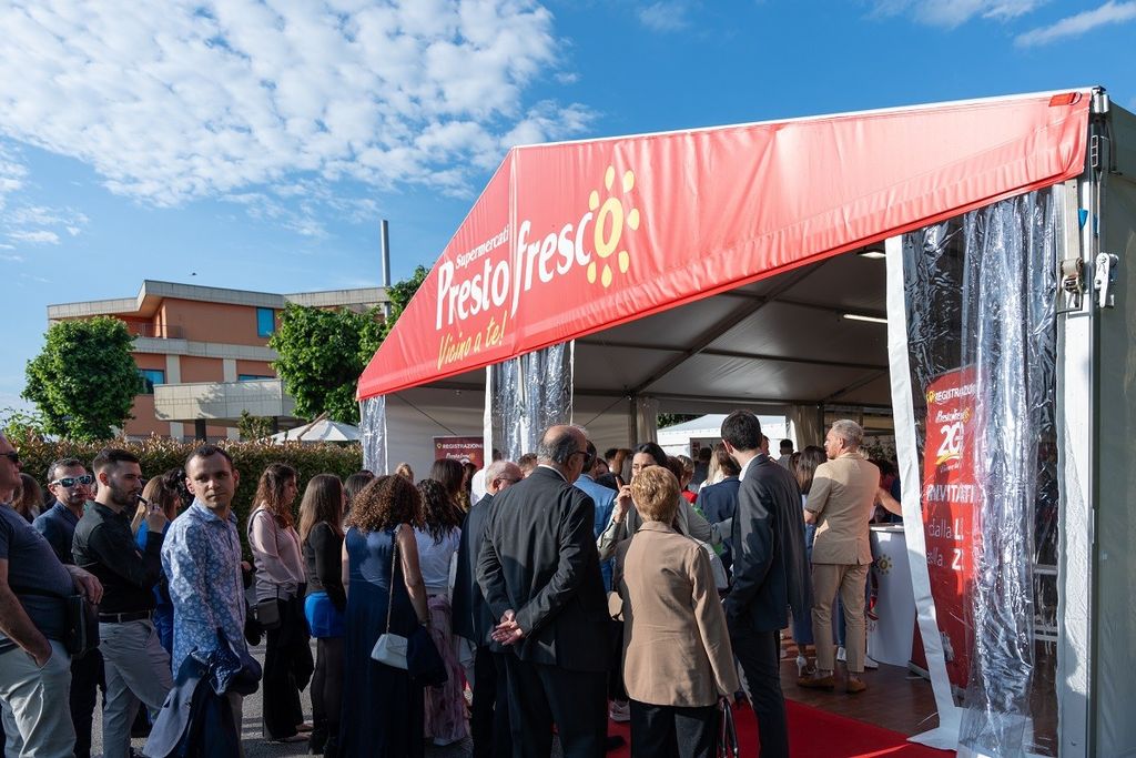 È stato un lungo momento di festa, denso di emozione, quello che ha visto quasi un migliaio di persone, fra dipendenti, fornitori, amici e autorità festeggiare insieme alla famiglia Sapino il 20° Anniversario dalla nascita del primo punto vendita Prestofresco.