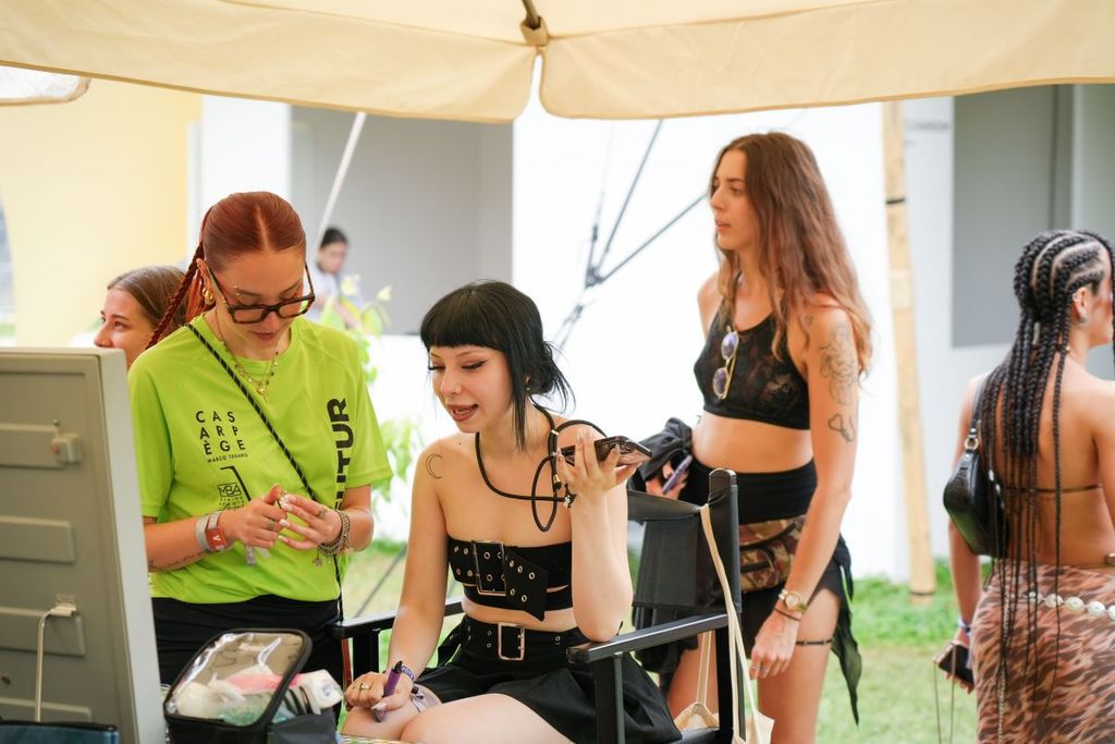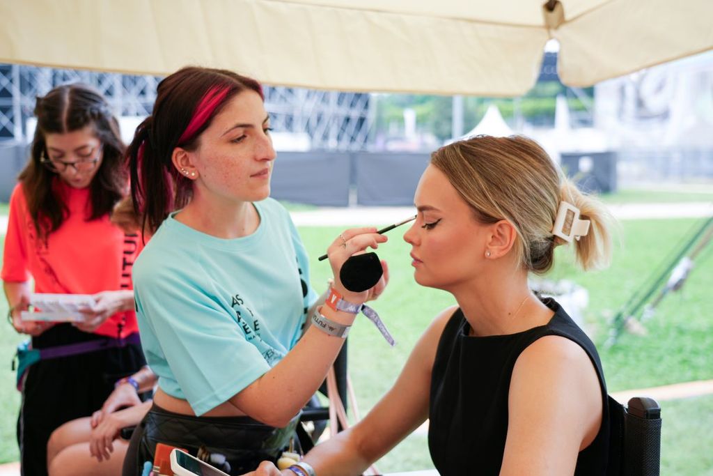Per il make-up voglia di luce, di divertimento leggero e trendy: migliaia di brillantini, gemme colorate e pailettes - accompagnati da eyeliner fluo e glitter - hanno definito il look degli ospiti della Vip lounge permettendo a ciascuno di personalizzare la propria immagine “da festival”. Ad applicarli, il team dei più di 50 giovani make up artist MBA Making Beauty Academy di Torino e Milano coordinati coordinati dai makeup artist pro Erika Romaniello, Claudia Pelle e Marco Piras. Gradita interprete di makeup inclusivo ad alta creatività, la talentuosa drag queen Elektra Bionic, vincitrice della prima edizione di Drag race Italia.