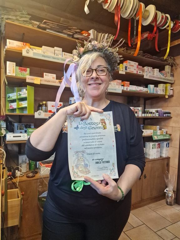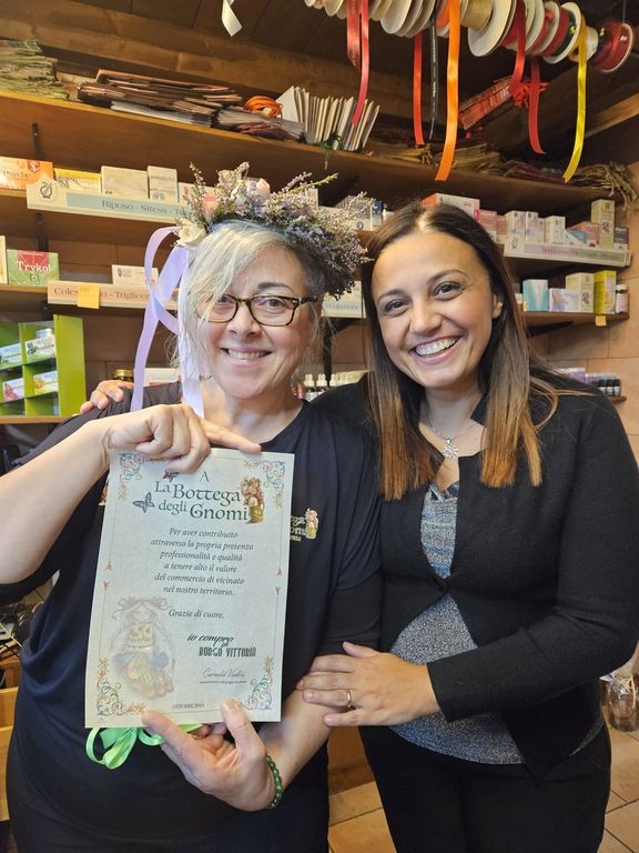 Carmela Ventra, amministratrice del Gruppo Facebook “Io Compro in Borgo Vittoria” dedicato al commercio di vicinato, ha consegnato la pergamena all’Erboristeria “La Bottega degli Gnomi” come riconoscimento per l’impegno e la professionalità dell’attività nell’ambito del commercio di vicinato affermando “Oggi è un giorno importante, festeggiamo insieme i trent'anni di attività dell’erboristeria gestita da Lorena, che porta con sé una lunga esperienza, una grandissima disponibilità e professionalità. Questa è la ricetta per poter sopravvivere nel tempo. Oltretutto lei è una delle più attive partecipanti del Gruppo Facebook che io amministro, la community più grande dedicata al commercio di vicinato che abbiamo nel nostro quartiere. Solo rimanendo così attivi si possono raggiungere questi traguardi e oggi siamo qui a testimoniarlo con questa pergamena”