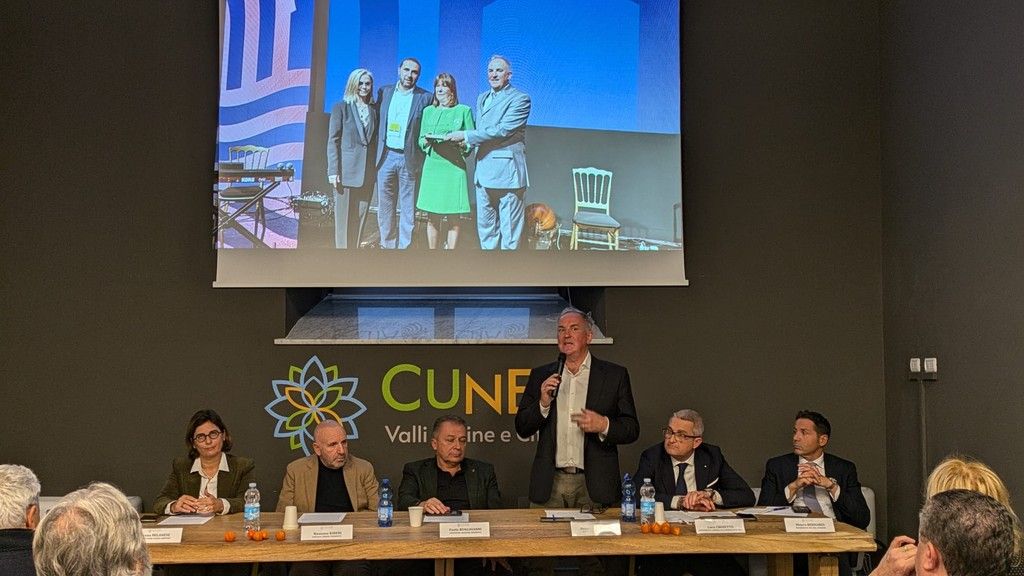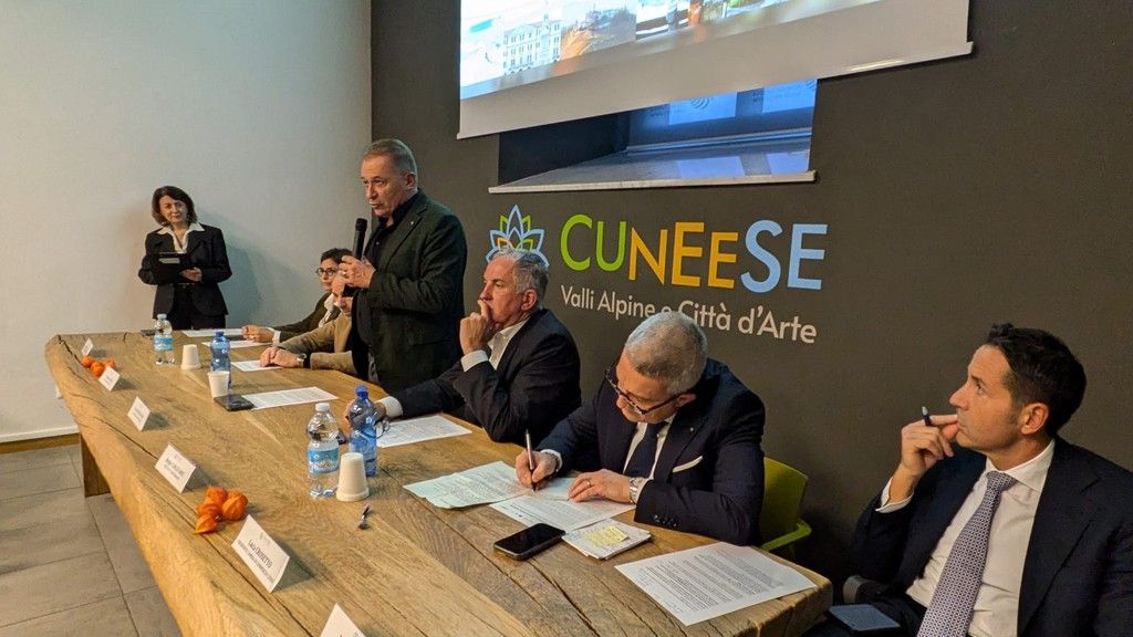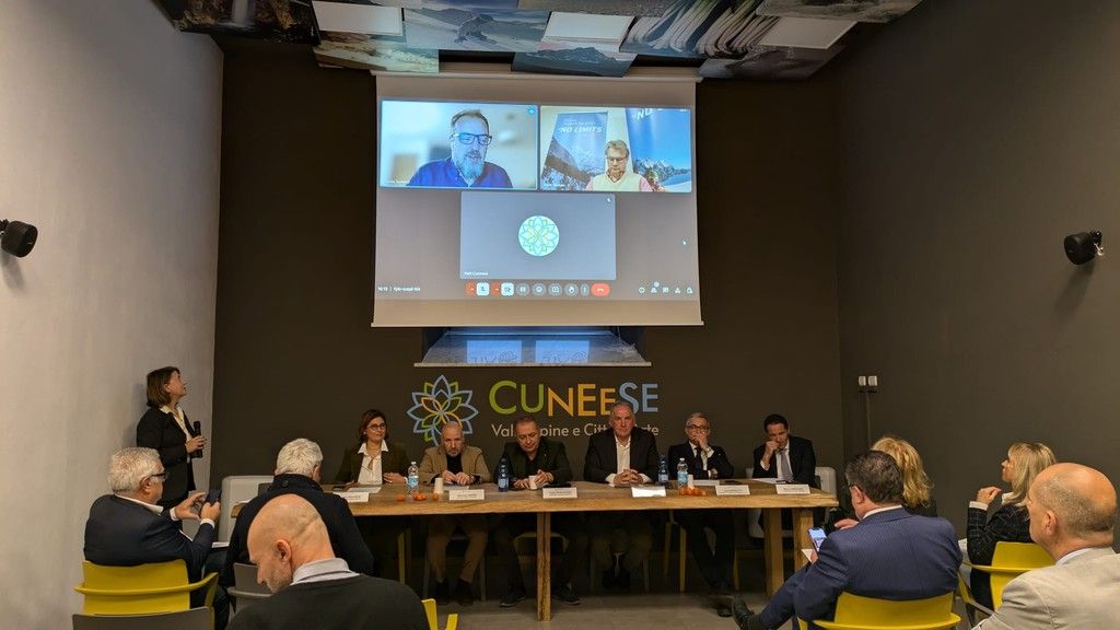 Il progetto “Ski Route Montagna Cuneese Inverno 2025” - sostenuto da Camera di commercio di Cuneo, ATL del Cuneese ed Ente Turismo Langhe Monferrato Roero - è stata presentato ieri, 21 ottobre, presso la sede ATL di Cuneo alla presenza dell’Assessore regionale Paolo Bongioanni (Commercio, Agricoltura e Cibo, Caccia e Pesca, Parchi), del Presidente della Camera di commercio di Cuneo, Luca Crosetto, del Presidente del C.d.A. di Visit Piemonte, Beppe Carlevaris; del direttore di Cuneo Airport, Anna Milanese; dei presidenti delle ATL del Cuneese e Langhe Monferrato e Roero, Mauro Bernardi e Mariano Rabino, di Danilo Turletto di ITAKA, del sindaco di Limone Piemonte, Massimo Riberi e Antonella Zanotti AD della società impianti di Limone  LIFT.