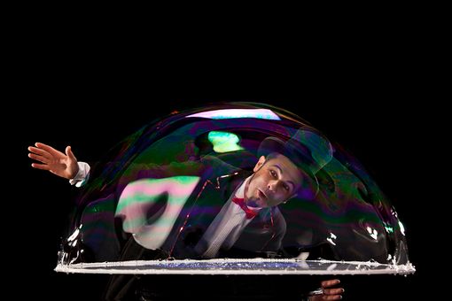 Un eccentrico direttore d’orchestra ci porterà nel mondo fragile e rotondo delle bolle di sapone per un “concerto” dove l’imprevisto è sempre in agguato: da strani strumenti nascono bolle giganti, bolle rimbalzine, bolle da passeggio, grappoli di bolle… mentre i più paffutelli potranno entrare in una bolla gigantesca! Un racconto visuale senza parole che trae ispirazione dalle atmosfere circensi e del varietà, un magico spettacolo di clownerie, pantomima e musica che, nato per i più piccoli, finisce per incantare il pubblico di qualsiasi età.