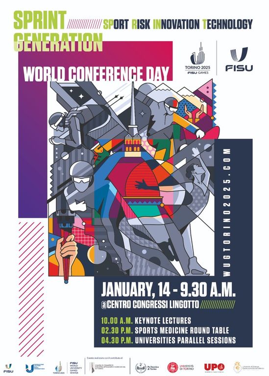 Il primo grande appuntamento è il 14 gennaio, il World Conference Day, che ruota attorno a quattro temi principali: lo Sport, il Rischio, l’Innovazione e le Tecnologie - Sport, Risk, Innovation e Technologies - dal cui acronimo è nato il nome del progetto, SPRINT. Si tratta della conferenza scientifica di rilievo internazionale che si svolgerà presso il Centro Congressi Torino Lingotto, e che vedrà alternarsi sessioni di approfondimento sui principali temi della Sprint grazie al coinvolgimento del network universitario piemontese: l'Università di Torino, il Politecnico di Torino, l'Università del Piemonte Orientale e l'Università di Scienze Gastronomiche.