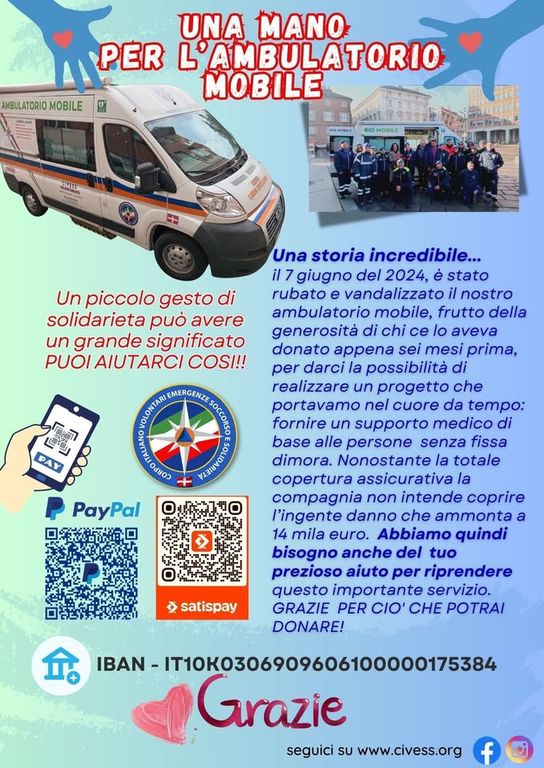 Ambulatorio mobile rubato e vandalizzato, sospeso il servizio di assistenza ai clochard