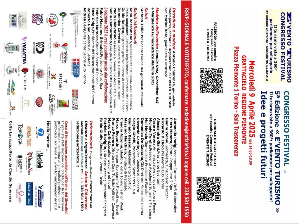 "E'VENTO DI TURISMO 2025" è una nuova opportunità per la promozione strategica del capoluogo piemontese in un'ottica di "area vasta". Una contaminazione di esperienze, luoghi e sapori. Non mancherà una adeguata riflessione sulle ricadute economiche e le visioni di sviluppo che il settore turistico impone ai nostri territori piemontesi. In questa ottica cercheremo di individuare e stilare le prossime sfide di Torino 2030 e delle principali aree territoriali piemontesi.