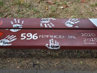 I ragazzi e le ragazze di Piazza Ragazzabile si sono occupati della panchina e vedendo il colore bordeaux, hanno subito pensato ad una sensibilizzazione contro il femminicidio. Si sono documentate e, partendo dai dati indicati sul sito di "Non una di meno", hanno calcolato il numero di femminicidi in Italia dal 2020 al 2025.