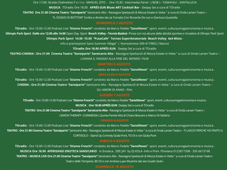 Programma weekend da Venerdi 1 Agosto a Domenica 3 Agosto