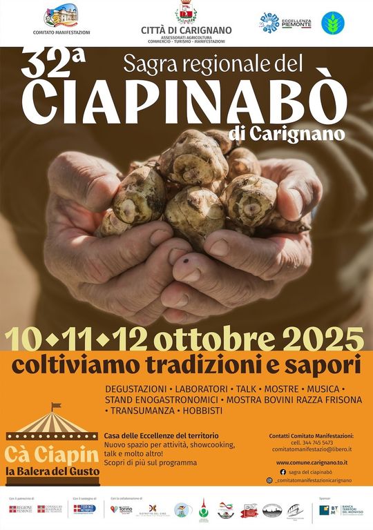 La 32° Sagra Regionale del Ciapinabò “Coltiviamo sapori e tradizioni”, torna dal 10 al 12 ottobre, ed è la grande festa di Carignano dedicata al topinambur.