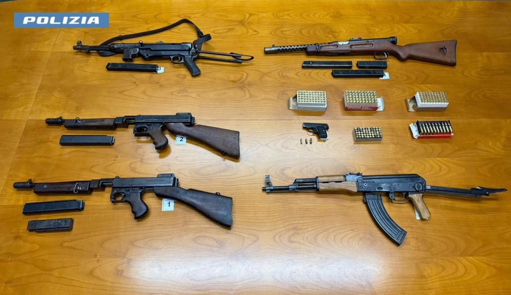 MILANO (ITALPRESS) - A Garbagnate Milanese gli agenti della Polizia di Stato hanno arrestato due cittadini italiani di 41 e 49 anni, per detenzione e traffico di armi da guerra e comuni da sparo. Il primo è stato anche denunciato per ricettazione, in quanto trovato in possesso di un'arma rubata.I poliziotti del commissariato Legnano e Busto Arsizio, in seguito a riscontri informativi, sono venuti a conoscenza di un imminente incontro tra i due uomini, finalizzato alla cessione di armi da guerra. Gli agenti hanno notato il 41enne, a bordo di un furgone, uscire dalla propria abitazione, per poi incontrare, il 49enne, giunto a bordo di un'utilitaria. Dopo un breve colloquio, hanno fatto accesso, con i propri veicoli, in un complesso condominiale per poi uscirvi dopo pochi minuti e dirigersi in direzioni diverse. I poliziotti hanno seguito i due, riuscendo a intercettare il furgone, guidato dal 41enne, nei pressi di un centro commerciale a Garbagnate Milanese. All'interno del veicolo sono state rinvenute e sequestrate due pistole mitragliatrici Thompson calibro 45, entrambe classificate come armi da guerra, una pistola mitragliatrice MP40 calibro 9, classificata come arma da guerra, un fucile Beretta modello Moschetto calibro 38 automatico, due calcioli per impugnatura a spalla e 33 cartucce calibro 9. Inoltre, presso il domicilio del 41enne è stato trovato un fucile d'assalto AK-47 di fabbricazione cinese, parti meccaniche e accessori per armi corte, oltre 120 cartucce di vario calibro e una pistola F.N calibro 6.35 risultata essere provento di furto in abitazione a Milano lo scorso dicembre.Successivamente gli agenti hanno perquisito l'abitazione del 49enne, al cui interno sono stati rinvenuti e sequestrati 4.420 euro nascosti in un guanto da motociclista e ulteriori banconote nel portafoglio, vari appunti manoscritti contenenti elenchi di armi, munizioni e relativi prezzi e 165 cartucce di vario calibro, custodite nel box di pertinenza.Il materiale sequestrato, di rilevante potenzialità offensiva e in parte di provenienza estera, verrà sottoposto a perizia balistica per verificare eventuali collegamenti con altri episodi criminosi.- foto ufficio stampa Polizia di Stato -(ITALPRESS).