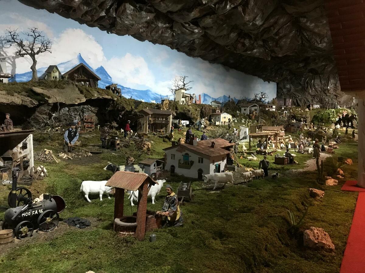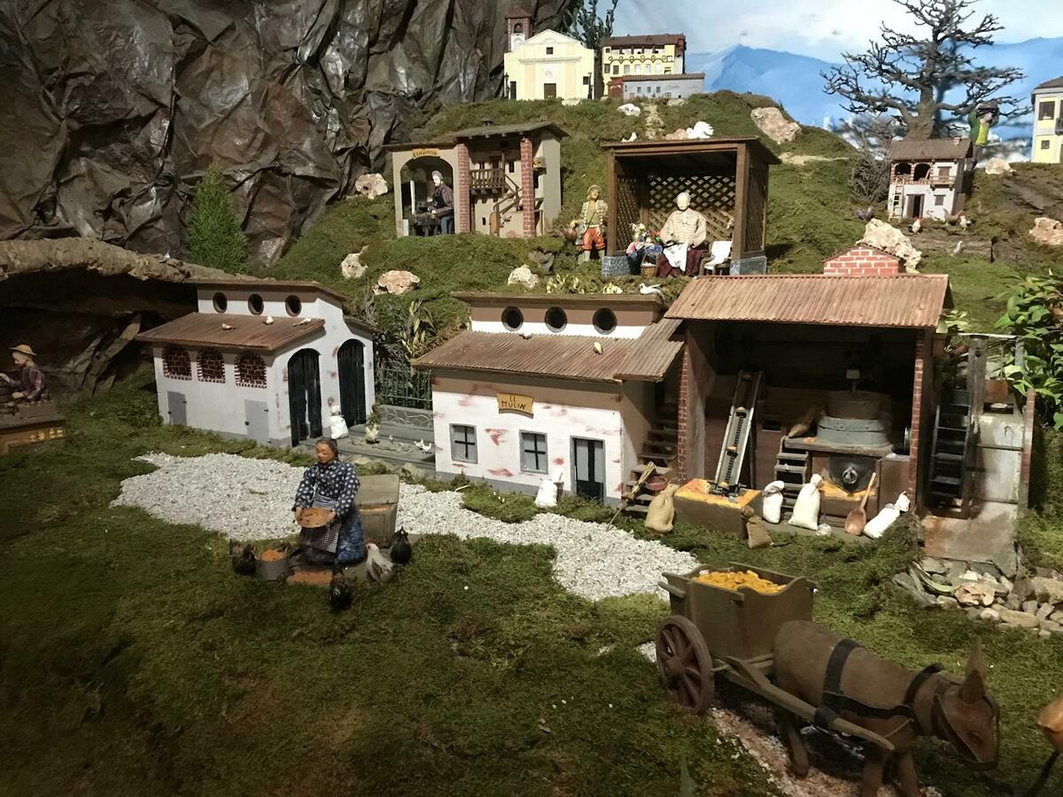 Attualmente si contano più di 120 statue in movimento, tutte realizzate artigianalmente dai componenti del gruppo. Questo allestimento rappresenta fedelmente i nostri tipici ambienti rurali (sia di pianura che alpini), facendo riaffiorare i ricordi dei mestieri che furono.