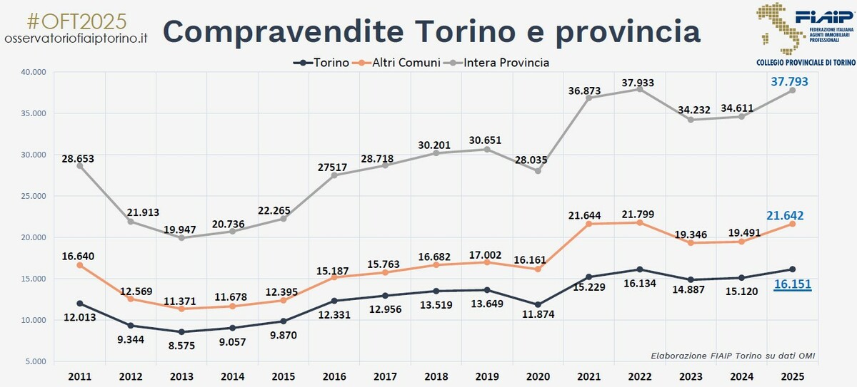 Una delle tendenze più evidenti del 2025 riguarda la provincia, che cresce più del capoluogo sia in termini di compravendite sia di valori. “Nel 2025 si rileva una controtendenza rispetto al passato”, ha sottolineato il vicepresidente di Fiaip Torino, Mauro Alasia. “Sempre più persone scelgono di spostarsi fuori città, alla ricerca di una migliore qualità della vita, maggiore sicurezza e abitazioni indipendenti”.