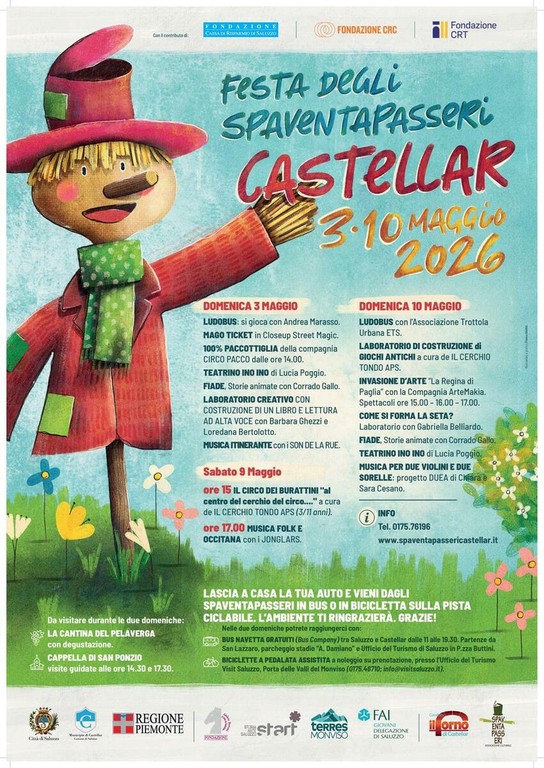 Castellar vi aspetta! Venite a passeggiare tra i campi fioriti e gli spaventapasseri, a ridere con i bambini, ad ascoltare musica e a respirare l’atmosfera unica di questo borgo incantato tra il 3 e il 10 maggio 2026.